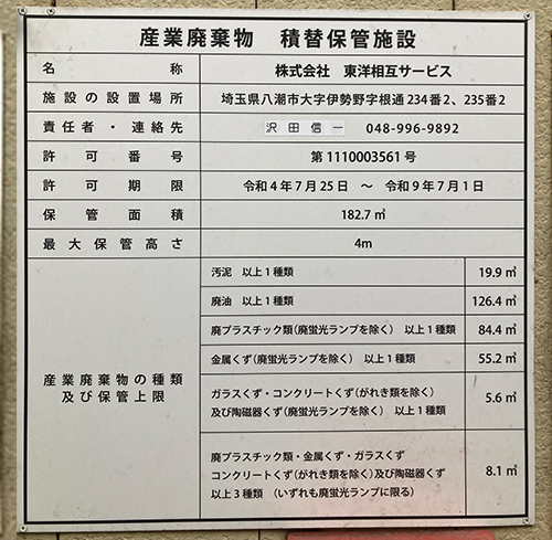積替保管施設(埼⽟県⼋潮市⼤字伊勢野字根通234番2、235番2)